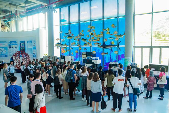 全球青年创新集训营活动与会人员在坝光国际生物展示厅合影 参加“良好健康与福祉”人才代表们还听取了潜爱大鹏珊瑚保育站的介绍。据悉,深圳大鹏新区潜爱大鹏珊瑚保育站,是新区经济服务局在创建国家海洋生态文明示范区、探索海洋生态保护社会共建机制中,帮助、扶持潜爱大鹏义工队成立的全国首个民间海洋生态保护机构。 活动当天,与会代表还参观了深圳国家基因库和坝光国际生物展示厅。据了解,深圳国家基因库是由国家四部委批复建设,服务于国家战略的国家级公益性创新科研及产业基础设施建设项目,是我国首个获批筹建的国家级综合性基因库,定位于有效保护、开发、利用遗传资源,为生命科学研究和生物产业创新发展提供服务的国家级科硏支撑平台。在坝光国际生物展示厅了解到,坝光核心启动区的功能布局包括产业社区、海洋生物园、基因谷、特色学院、滨海休闲带,将建设成集科研、孵化、教育、健康服务、滨海休闲于一体的科技生态小城,并配套国际标准会议中心、中心公园、文化中心、博物馆、游艇码头、海洋馆等。