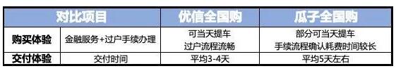 优信物流成熟覆盖范围广 最远交付实现大庆-海口 优信二手车在行业内首推“全国购”业务模式,经过三年的磨练和不断完善,目前已经覆盖全国900个城市和地区,用户在平台上的可选车辆的品牌和车型非常丰富,对于跨城或者异地车辆的交易,比如新疆、西藏等偏远地区,优信二手车平台优势凸出。目前,优信实际完成超过13500条全国的交付网络,实现大庆-海口的最远交付运输距离。而瓜子的业务范围覆盖区域有限,目前仅覆盖全国200个城市,一些偏远地区至今没有瓜子的身影。