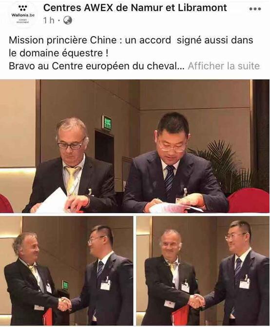 此前,权威专家Didier Serteyn教授、两届奥运会马术项目的奖牌得主、比利时国宝级马术选手弗朗索瓦、比利时航空CEO Niky Terzakis等人一行共同出席在北京骑缘国际马术俱乐部举办的“中国与比利时马术与学术交流中心”揭牌仪式。