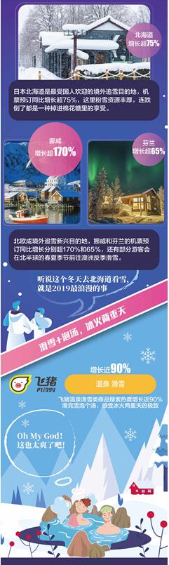 光在境内追雪还不够,不少年轻人把目光投向更为成熟的世界级滑雪胜地。最受中国游客关注的是日本北海道,飞猪平台的北海道机票预订同比增长超75%。同时,北欧人气蹿升,挪威和芬兰的机票预订同比增长分别超170%和65%,不但可以在圣诞老人村体验冰雪氛围,还可以看极光坐雪橇。