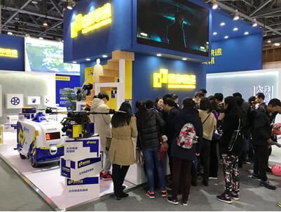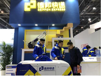 现场的D07展位吸引了很多观众的驻足围观,很是热闹。原来是德邦快递工作人员正在展示和讲解无人机、无人车、蓝精灵、爬楼机等快递科技。