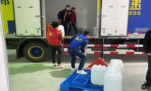 1月27日,德邦快递深圳枢纽中心运送2吨消毒液至武汉市;