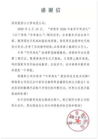 以武汉协和医院为例,齐心好视通全方位助力武汉协和医院搭建远程会诊平台,通过远程会诊平台,武汉协和医院可接受各地医疗资源的远程指导与援助,一定程度缓解了武汉协和医院医护人员调配紧张、超负荷工作的情况,同时,使用远程会诊指导也可减少外地医疗专家往返疫区的风险。 帮助孝感等多地搭建云教学平台,助力学校“不停教不停课” 在线教育领域,为保障新学期教育教学进度,不让学生们因延期开学而延误学习,齐心好视通助力各大教育机关、学校推进网上教学工作,学校范围覆盖小学、初中、高中、大学。近期,湖北省孝感市教育局、辽宁省全省教育系统、中国政法大学、延安北大培文实验学校、北京市平谷中学等教育机构纷纷携手齐心好视通开展网上教学及校园疫情防控工作。 例如,在湖北省第二疫情重灾区的孝感市,在疫情期间跟上教学进度,孝感教育局携手齐心好视通搭建了线上教学平台,全面启动网上教学工作。在齐心好视通的协助下,目前孝感全市普通高中学校已经全部开始了网上教学。其中,在2月8日的线上培训会中,在线人数超7万;在2月10日的线上开学典礼中,累计点赞数超1045万。