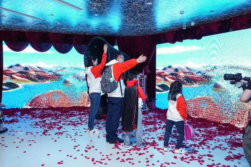 一组来自于“巨量算术”的报告揭示:2020年,抖音的日活用户数量超过4亿。90后超过半壁江山,人均日使用时长在 30 分钟以上的用户占到抖音用户占用的38.0 %——人们对于4G时代的绝妙产品短视频、直播,正在产生史无前例的依赖感。直播这种原本在年轻人中流行的一种生活方式,由于20202年疫情的影响得以在全行业迅速普及推广,成为了今年最广泛应用的科技手段。 蒋文辉表示,作为艺术推广者一定要有一些接地气的方法去走近观众,直播可以让观众间接的全方位的关注到艺术家和艺术本身,最后她还引用理想主义者罗永浩的”永远年轻,永远热泪盈眶。”“当你试图放弃一个你知道是正确的事情的时候,希望你能再看看。”经典话语,作为鼓励自己前行的座右铭。 科技与艺术结合成亮点 多媒体艺术形式未来可期 艺术沙龙开幕当天,展厅外面的体感交互多媒体作品成为了打卡热点。 在谈到为何要在现场放置这样一个很科技的作品的时候,蒋文辉说到“作为一个艺术推广人,如何用更通俗更有趣的方式最大可能的吸引人们参与艺术,了解艺术,喜欢艺术”这是她的初衷。基于这样的初衷,去找相应的制作团队如何把作品更好的结合。通过和制作团队合作她才发现,现在的艺术界限已经非常模糊,比如此次合作的玄蝠团队,他们有视觉艺术家,声音艺术家,新媒体专家,“我们看到的现场很酷好玩的东西都是他们三个领域的艺术家联手合作完成的。 科技元素的加入带来了一种全新的视觉体验和理解角度。从科技的虚拟想象当中,拓宽了艺术的可能性,丰富了人们的想象力。科技已经融入了我们的生活的方方面面,特别在年轻的群体当中,如果你想了解他们,和他们打成一片,这是必须要了解和学习的领域;同时,科技已经成为协助人类将想象力发挥的更为极致的得力助手,这对艺术家来说既是机遇也是挑战。对此蒋文辉表示,她希望如果有精力的话,今后的创作可以以无拘无束的创作精神,建立起让科技与艺术交融,互相激发的机遇,希望有一天也可以站在艺术创新的新起点上。 |
