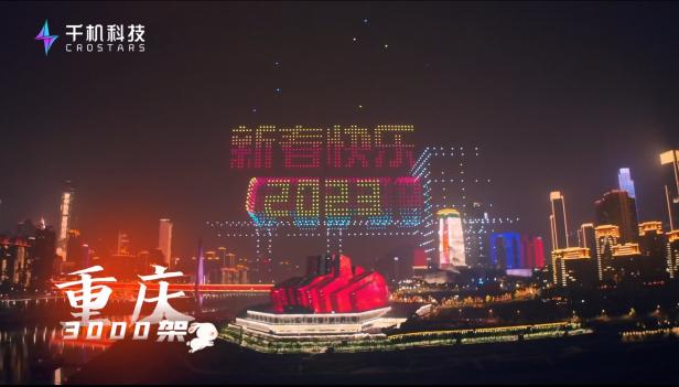 在重庆,除夕夜3000架无人机光影流转,一段疾驶而来的山城地铁开启了兔年新春的序幕,一艘巨大的邮轮在空中缓缓驶来,和魔幻山城相映成趣,好不震撼!