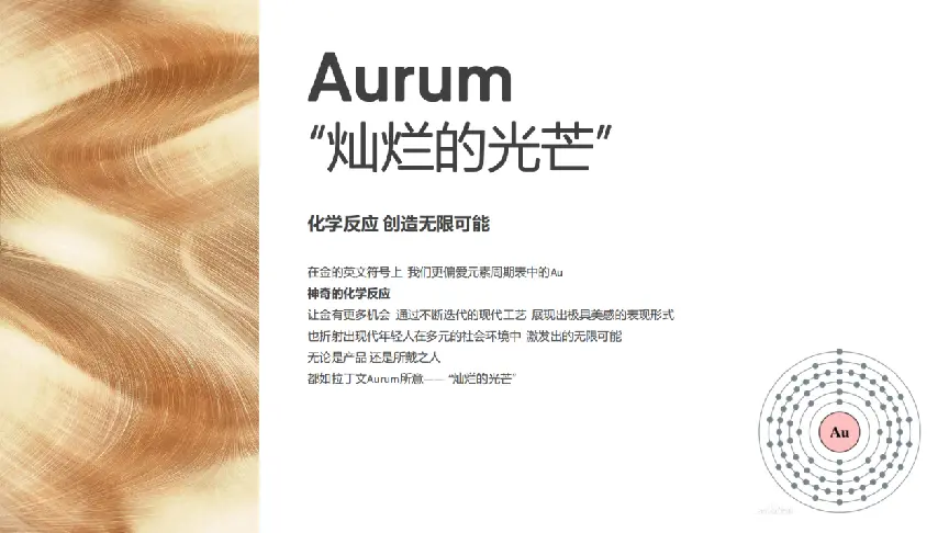 Aurum 是拉丁文,寓意“灿烂的光芒”。C.AURUM潮金通过不断迭代的现代工艺,让黄金焕发出更加灿烂的生机与活力,有更多机会充分展现出极具美感的表现形式。也折射出现代年轻人在多元的社会环境中激发出的无限可能。无论是产品,还是所戴之人,都如拉丁文Aurum所意——灿烂的光芒。 潮流涌动