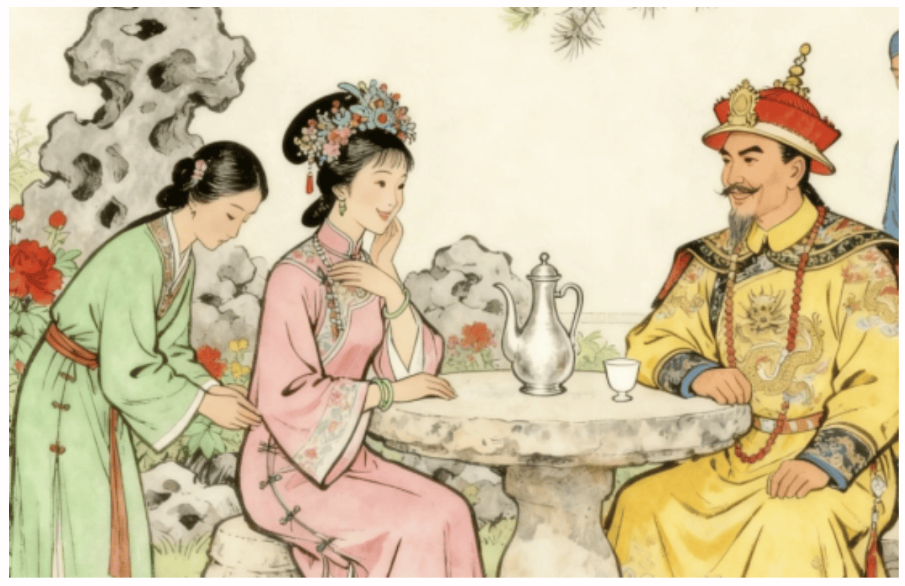 田道长闻言大惊失色,急拱身作揖道:“贫道乃一乡野村夫,不敢有此奢望,更不敢求得任何封赏。”徐达深知朱元璋的性格,急为田道长开脱:“圣上一言九鼎,不可拂圣上之意。道长切莫推却矣!”田道长再次拱手作揖:“贫道云游四方,治病救人为任,不敢求大功。圣上收复燕云十六州是天命所归,万民之福。圣上若能赐贫道一个号‘燕云堂主’,便是贫道之万分之福也。”朱元璋见状不便挽留,命取笔墨欣然为田道长题下“燕云堂主”四字,并将道长秘方收为御用,取其“明酒”成宫廷一号秘方。 1644年(明崇祯十七年)明朝灭亡,4月22日清军入关,10月定都北京,确立全国统治。“明酒”以宫廷一号秘方的编号,纳入清宫廷御酒。1741年,满洲正黄旗叶赫那拉氏入宫即封贵人,六日内晋舒嫔,创乾隆最快晋升纪录,乾隆十三年晋封妃位(至去世未再晋),这是后话。 据传叶赫那拉氏的诅咒源于16世纪末至17世纪初女真部落的冲突,努尔哈赤统一女真时,叶赫部首领布扬古在城破前发誓:“我叶赫那拉就算只剩下一个女人,也要灭建州女真!”这一誓言被后人演绎为“叶赫那拉诅咒”,声称叶赫后裔将复仇爱新觉罗家族。而为何后宫佳丽三千,乾隆独宠舒妃?乃至绿牌翻掉漆,也宠爱一如往昔。皆因一日乾隆闲逛御花园,偶遇舒妃抚腹蹙眉轻叹,眉间一粒朱砂痣突显,好似那林中孤傲人参清丽脱俗。乾隆不禁脱口赞曰:“轻入瑶池舒广袖,蹙眉一叹玉兔留”,一声轻赞把正在池边腹疼难忍的舒妃吓得惊慌失措,如梨花带雨般将乾隆逗得开怀大笑。是夜翻牌,继而不断,以至绿牌掉漆独宠一人。舒妃虽是得宠,却因腹中有疾而未得孕,亦成心中痼疾。