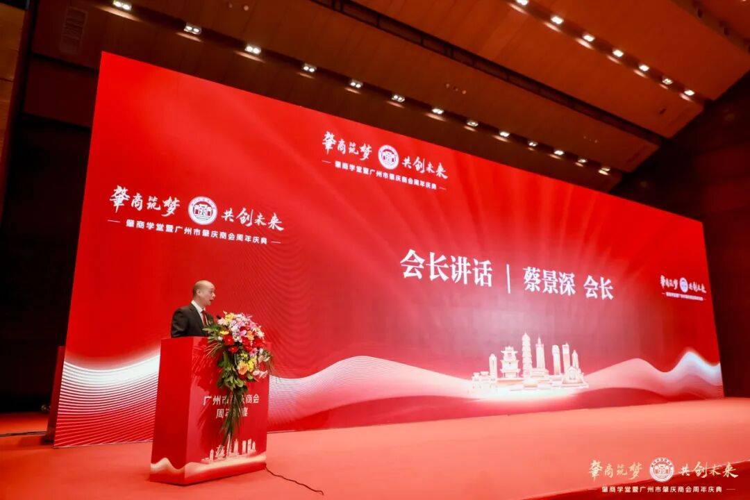 ![]() ▲广州市肇庆商会会长蔡景深讲话 会长蔡景深登台讲话,深情回顾周年征程,清晰展望未来发展,表达了与全体会员同心同德、共谋发展的坚定决心。