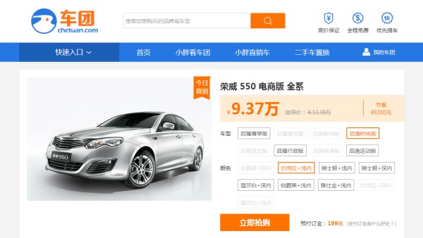 近几年汽车电商这个概念非常流行,各路英豪也都纷纷尝试,可是看看国内的汽车电商现状,到目前为止却还没有任何一家平台真正实现了电商化。所有人都知道,真正做到像在天猫买衣服一样在网上买汽车,还需要一些年头。但是,这并不意味着汽车电商的路就是走不通的,恰恰相反,互联网+汽车的经济新模式是大势所趋,必将给汽车行业带来前所未有的变革。那么,让我们先来看看这个领域的先行者,是如何进行汽车电商模式探索的。 作为一个新形式电商,最基础的是什么,是支付功能。没有真正意义上的支付,汽车电商也就仅仅是传统经销商进行集客的众多渠道之一,谈不上创新可言。关于这一点,车团很早就认识到并付诸实施,支付功能的实现,让车团的汽车电商之路有了坚实的基础。