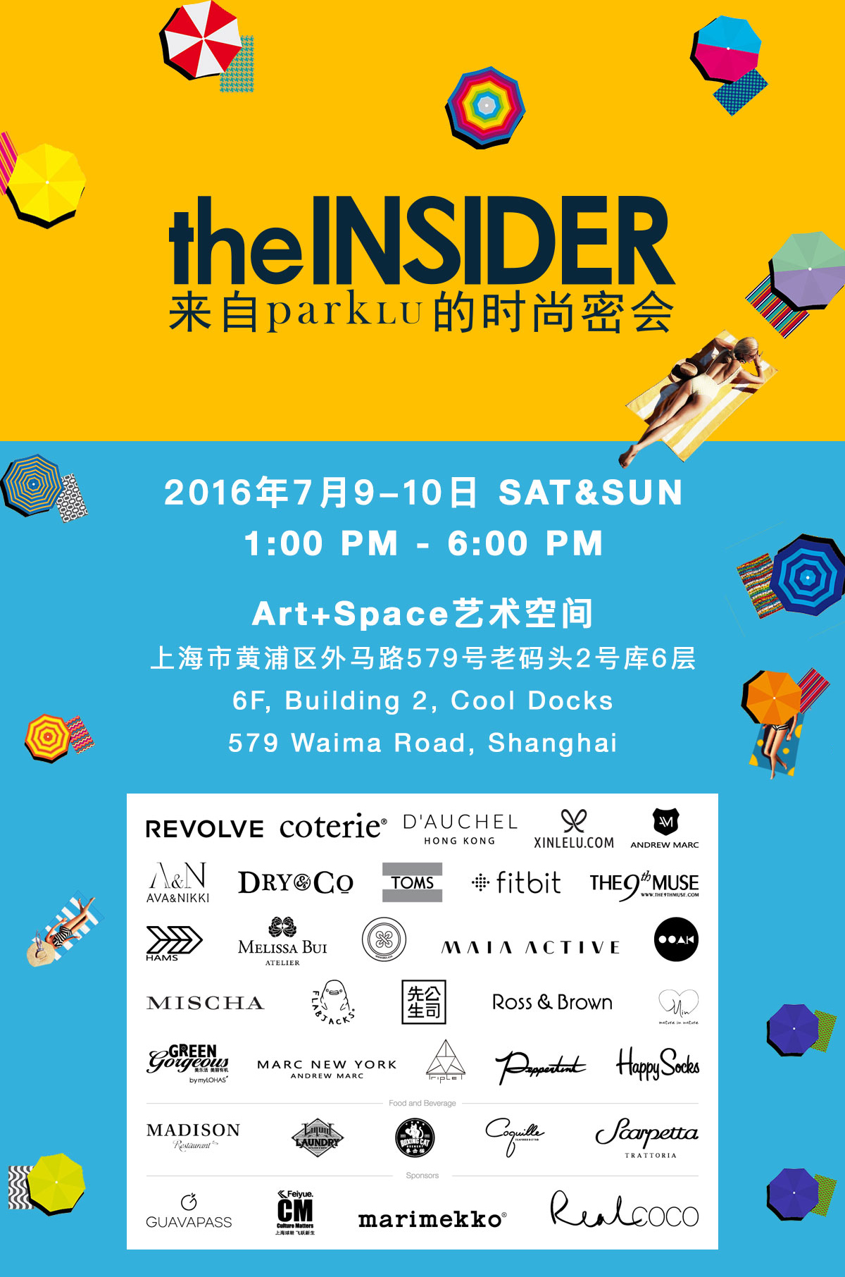 theINSIDER盛夏购物密会 7月9日周六(下午1点至6点);7月10日周日(下午1点至6点) 地点:上海市黄浦区外马路579号老码头2号库6层 您可以到ParkLU官网报名! 或直接搜索ParkLU进一步了解。 |