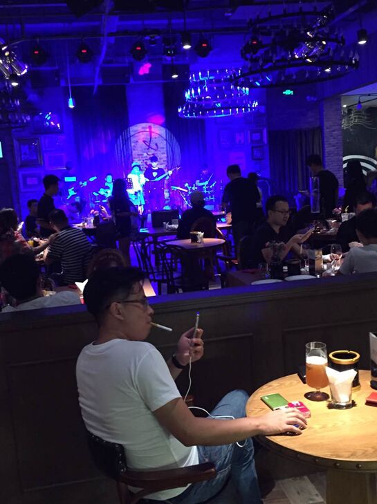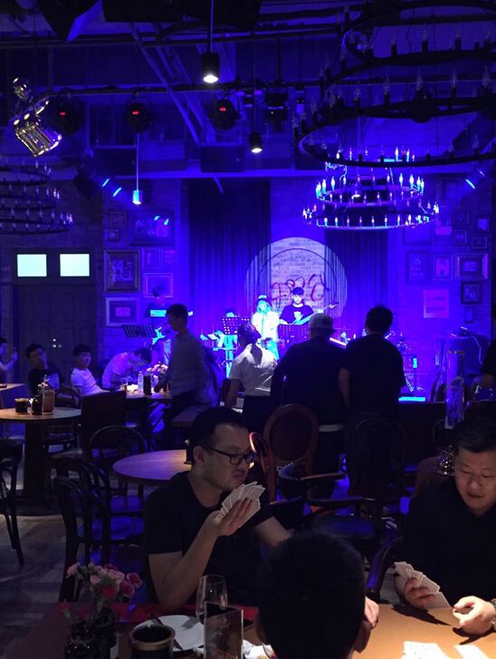因为,这里热闹与安静并存,内场人声鼎沸,外场安静烂漫。 在室内的一般都是喜欢热闹的,几个好友聚在一起,点几杯啤酒,一起打打牌,聊聊天,看乐队演出。