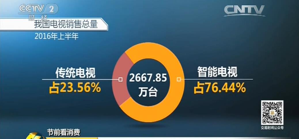 销量之创维:创维电视国内市场销售量和销售额占有率均位居第一 电视行业从CRT时代一路发展到4K液晶时代,从传统电视到智能电视,市场与消费者需求都经历了持续升级的过程。据央视财经《交易时间》节目报道:2016年上半年我国电视销售总量2667.85万台,其中智能电视销量占比76.44%,传统电视占比23.56%,市场整体已经进入“智能电视时代”。但无论处于哪一个时代,创维电视的销量表现都非常突出。尤其是近些年,随着自身技术突破,产品不断迭代升级,品质越来越好,创维电视销售业绩长期领先市场。