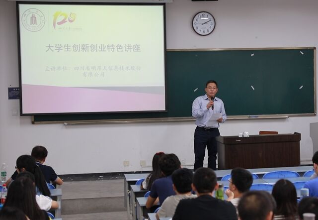 2016年9月29日是四川大学120周年校庆当日,由四川大学联合四川省明厚天信息技术股份有限公司主办的“创新创业”成果展与“创新创业”特色讲座在电子信息学院开幕举行。本次校庆活动,学校将突出“创新创业”的概念,围绕“创新创业”开展国际学术论坛、前沿学科讲座、创新创业特色论坛、校友大讲坛及学校成果展等系列活动。