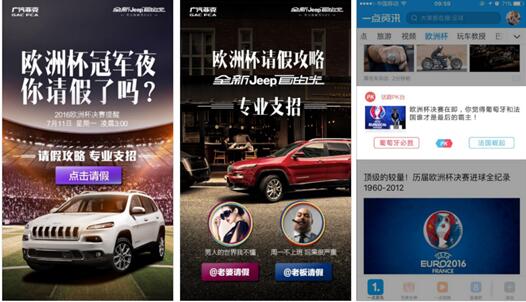 媒介营销奖银奖——Jeep自由光“欧洲杯请假攻略”。欧洲杯期间,基于一点资讯大数据洞察,发现“请假看球”为用户关注热点。针对这一痛点,推出“欧洲杯请假攻略”O2O整合营销,借助话题PK,请假互动H5等多种形式,吸引用户参与线上讨论与互动,并导流至决赛夜线下活动,邀请百余位KOL与球迷共度狂欢夜,开创移动端体育营销新玩法。