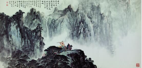 辛弃疾词意 《鉴真东渡》《徐福过海》《圆测拜师玄奘》《张骞出使西域》等作品,所展现的是自远古以来,无论是远隔重洋的东赢扶桑,还是关山重重的西域大漠,我国一直无私大度派遣使者、委以重任把华夏文明、先进生活生产技术向睦邻友邦传递交流。通过旭东教授笔下古意盎然、细致如微、兼工带写的笔墨,我们可以清晰感受到即将告别强大祖国、启航远行船队的宏阔壮观画面,可以看到千军万马、旌旗猎猎、重载物资、不顾险阻行进在万水千山之间,可以看到领军人物重任在肩的从容无畏,随行人员精神抖擞大义凛然。透过画作让我们回溯,无论是陸上或是海上丝绸之路,都是先辈们不畏艰辛险阻、前仆后继为我们开创奠定与世界各国交往互融留下的宝贵遗产和种子。