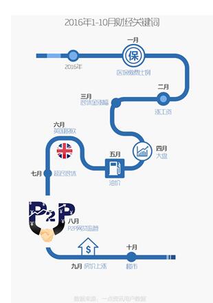 近日,一点资讯联合凤凰财经发布2016财经资讯大数据报告。报告显示,财经资讯的关注度不仅受性别影响,还受城市的发展水平影响;而就热点而言,改革、人民币国际化、美国大选等话题依然牢牢攥着民众的注意力,房价问题和地产泡沫成为贯穿2016整年的话题。 时间线:每月财经关键词70%被民生问题承包 每月财经关键词实时反映了网友的关注焦点,主要以民生、时政为主。例如,一月医保缴费比例、五月油价、七月延迟退休等关键词均体现了人们对民生领域的强烈关注。此外,六月热点英国脱欧凭借超强的话题性也成为老百姓茶余饭后讨论的热点。