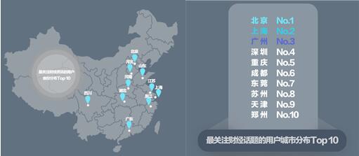 地域:经济发达地区更关注财经话题 从地域分布情况来看,北上广深等一线城市霸占着关注财经话题用户量的前四位,可见用户对财经资讯的关注度与所在城市的经济发展水平成正比。