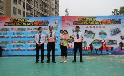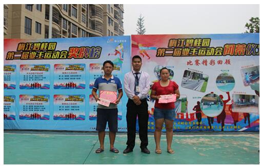 2016年8月27-28日,梅江碧桂园举办了第二届业主运动会,本次活动约有150多名业主参与,主要比赛项目有拔河、篮球、乒乓球、100米短跑、象棋等五项,现场约有200多名业主前来观看,现场气氛融洽,充满了欢呼声,加油声。