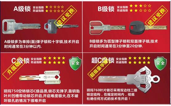 了解了以上的信息,年底正是盗窃案高发期,小伙伴们是否有些担心呢?你家的锁是A级还是B级或者C级呢?大门锁重要还是房门锁重要呢?又是怎样的锁才能保障大家的财产安全呢?