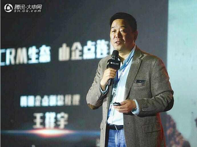 大会现场 此次峰会旨在探讨互联网背景下“智慧未来”新图景。腾讯大申网联合腾讯云、腾讯企点提出一站式智慧企业方案,以腾讯大平台优质资源为依托,结合腾讯大申网的核心能力,打造智慧企业;同时,峰会上还探讨了互联网背景下,网红、IP、自媒体如何通过新技术、大平台以更加多样化的形式打造品牌形象;腾讯大申网还联合腾讯公益细究互联网背景下公益如何发挥更大的力量,更加具有凝聚力。 会上,腾讯企点副总经理王祥宇为大家介绍了SCRM生态由企点连接。他强调,从传统时代到传统CRM时代,发展到今天的社交时代,企业和消费者的连接方式一直发生着改变。而腾讯企点可以帮助企业在正确的场景将正确的信息传递给最正确的人。