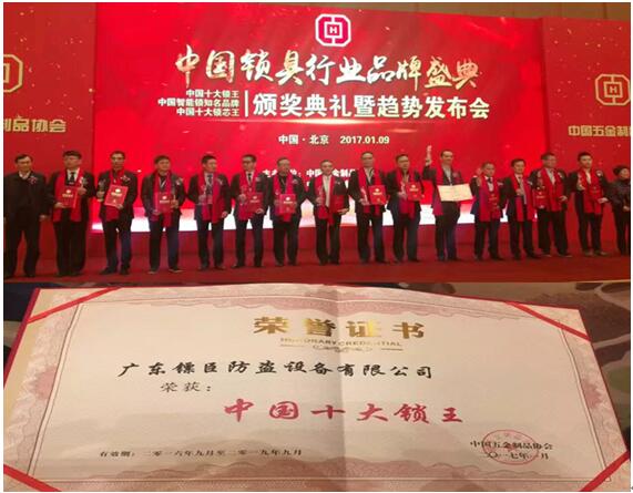 近日,为推动锁具行业品牌建设、为消费者提供安心之选,中国五金制品协会主办“中国锁具行业品牌盛典颁奖典礼暨趋势发布会”在北京举办,备受关注的“中国十大锁王”“中国智能锁知名品牌”“中国十大锁芯王”评选活动获奖名单也揭晓。经过一系列严格、细致的评审,来自全国各地的三十三家行业重点骨干企业分获三大奖项,其中以空转锁芯、二次锁定、玥玛保险柜等产品广受好评的中山知名锁具企业------广东镖臣防盗设备有限公司(玥玛锁具)也斩获了“中国十大锁王”荣誉奖项!
