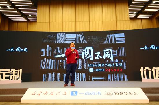 1月16日,由一点资讯、韬奋基金会和新华书店总店联合主办的“‘一点·阅不同’2016年度热门阅读榜单发布会”在京隆重举行。全国政协委员、韬奋基金会理事长聂震宁,新华书店总店总经理茅院生,著名作家梁晓声等领导嘉宾共同出席。活动现场,一点资讯副总裁金治发布了“2016年度阅读兴趣报告”。