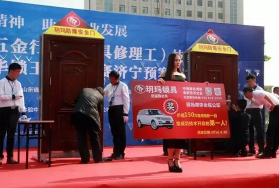 4月17日广交会期间,玥玛锁具举办了一场中外锁王争霸赛,第一次将中国先进的制锁工艺挑战环球高手,经过几轮紧张激烈的角逐,玥玛锁守擂成功,向全世界展示了玥玛锁具无与争锋的实力,其后,玥玛锁具更是在各地设下百万擂台赛,挑战全国开锁高手,至今无一人挑战成功。