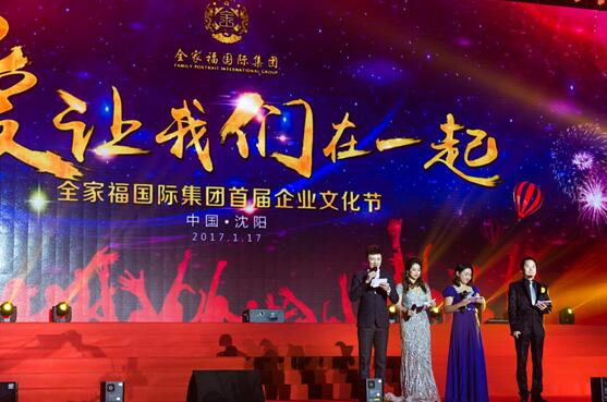 1月17、18日,全家福国际集团首届企业文化节暨年会盛典在沈阳大学体育馆召开。群星云集,庞龙、乌兰托娅倾情助阵,更有励志导师陈州带来新年第一课。来自全家福国际集团及旗下老妈乐全国各地的员工、新老朋友近4000名人员共襄盛举。