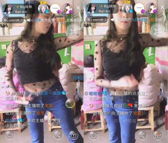 粉丝“哈哈哈”便自觉担当场控说道:主播去换衣服跳拉丁啦,大家都不要走~~~ 主播Big妹妹很快换好衣服开始直播跳舞,又因为自己刚开学舞蹈服也没带齐就换了个上衣,于是穿着牛仔裤就开始跳上了;小编表示这样的妹子也是---率性至极~~~