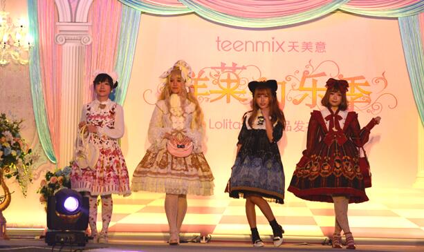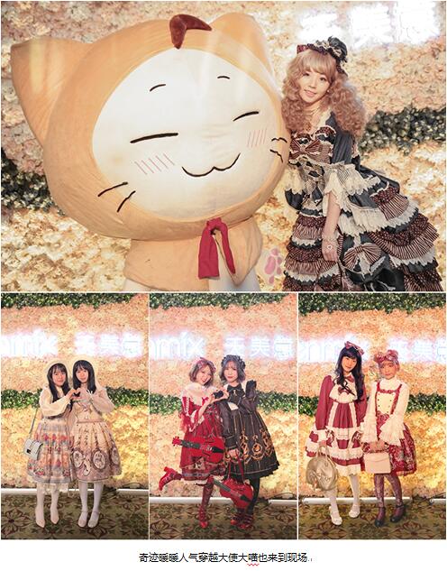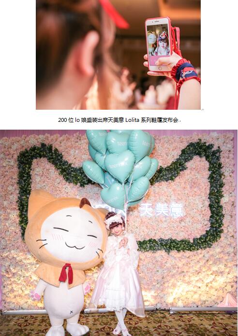 Lolita Fashion知名模特青木美沙子、网络人气UP主软软冰、B站签约主播语梨还有Lolita人气博主陆离,媒体朋友和人气穿越大使奇迹暖暖大喵来到现场,更吸引200位Lo娘前来参与。场内设计豪华绚烂,如梦境般的氛围让人沉醉。现场发布天美意Teenmix为洛丽塔风格精心设计10款鞋履。